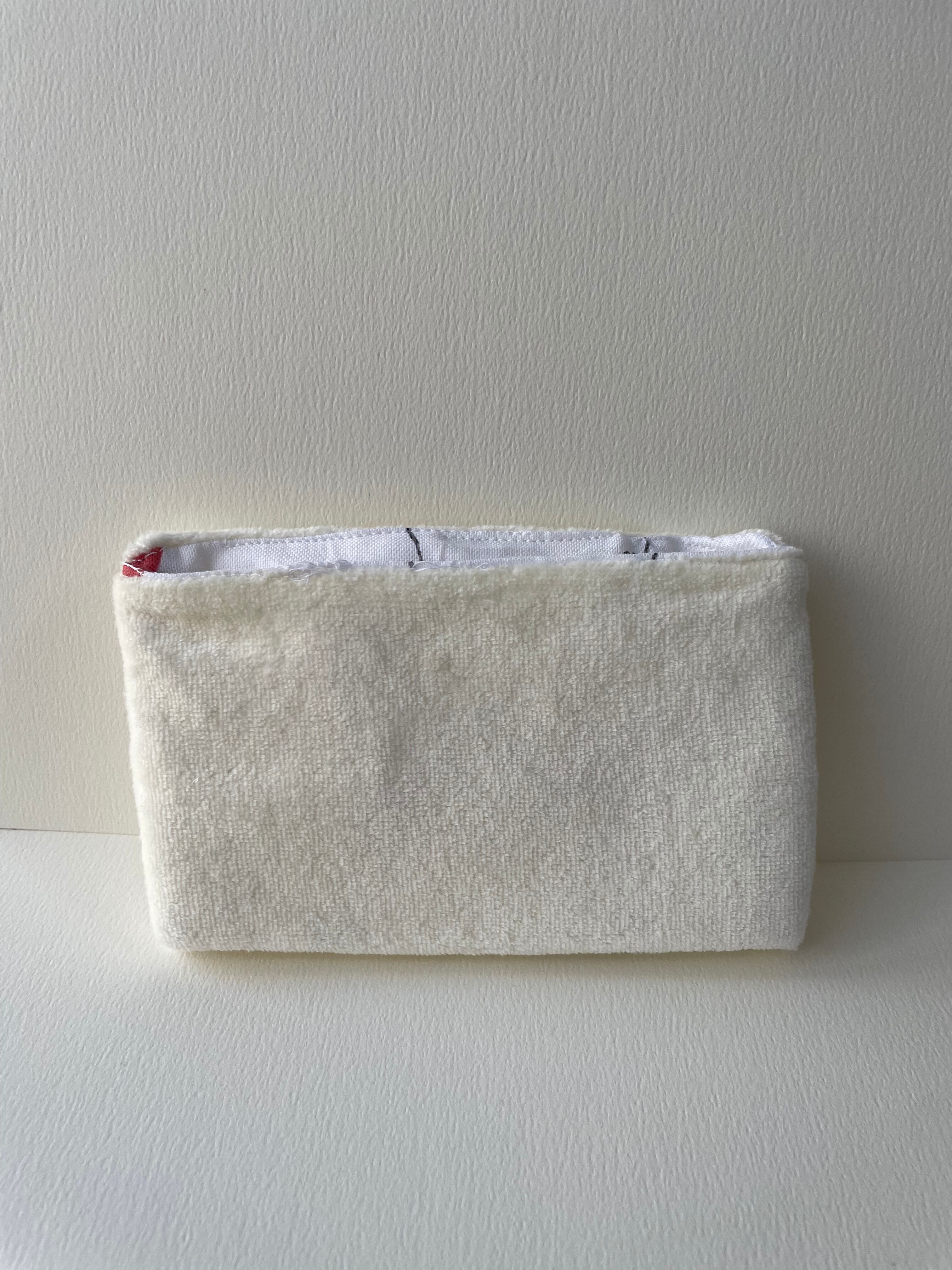 ぺたんこに折りたためる小物入れです。お家ではもちろん、旅行先でのちょっとしたアクセサリー置き場にしたり、軽くて小さいので持ち運びも便利です。裏返してサンタさんにベロアの雪がかぶっているように折っていただくと、なお可愛いかと思います。